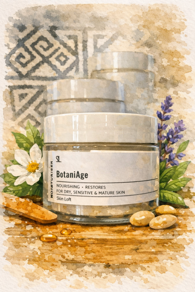 BotaniAge Moisturiser, a deeply nourishing cream designed to restore skin vitality and resilience. Formulated with luxurious oils, anti-aging actives, and soothing botanical extracts, this cream targets fine lines, evens skin tone, and boosts elasticity for smooth, youthful skin.